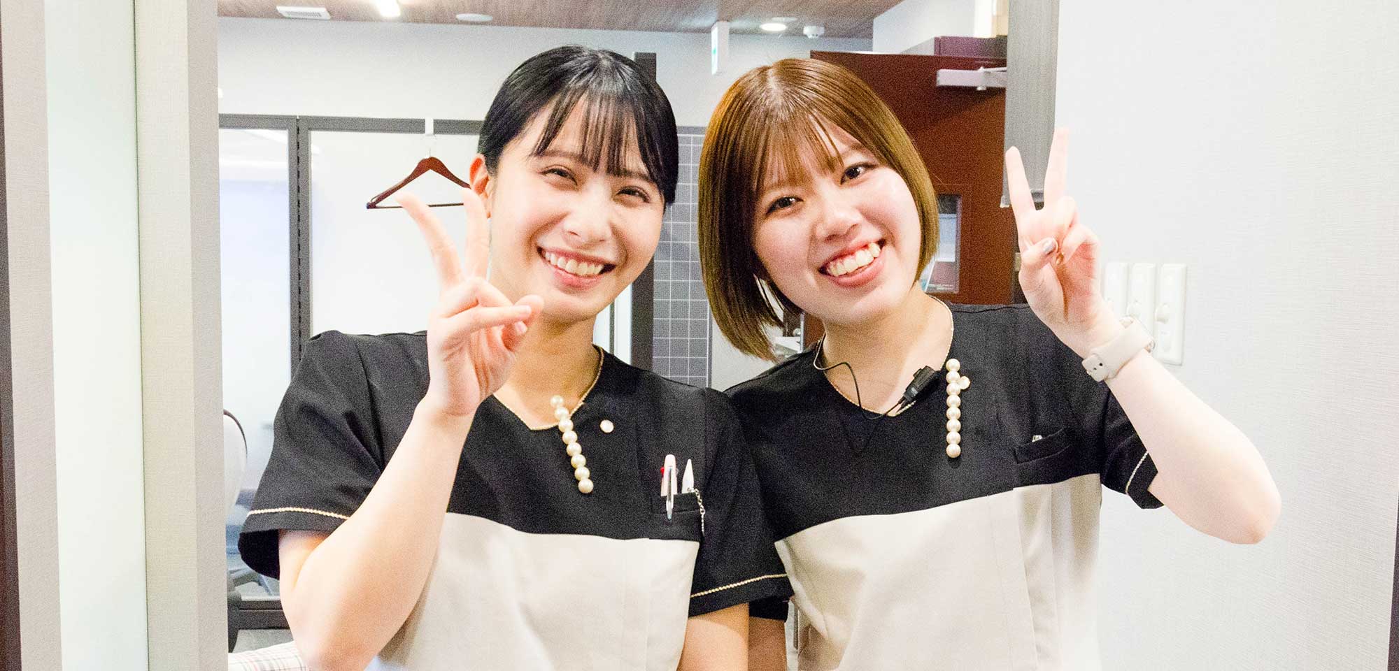 私は歯科の知識がまったくない状態からのスタートだったのですが、一つひとつ丁寧に教えていただけて、安心して仕事を始めることができました。スタッフの皆さんもとても優しくて、雰囲気もよく、同期がいるというのも大きな支えになっています。